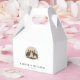 Imprima seus convidados com nossa caixa de favoritos do casamento ocidental. Apresentando os nomes da noiva e do noivo e a data do casamento em uma fonte ocidental, esta caixa apresenta uma silhueta romântica de um casal de casamento de vaqueiro em cavalo contra um pôr do sol. Perfeito por adicionar um toque de romance rústico e encanto personalizado à celebração do país.