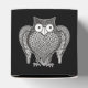 O desenho da coruja com corpo em forma de coração e texto personalizado.