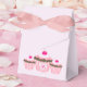 Um tema de festa de aniversário divertido com cupcakes cor-de-rosa com aspersores e uma cereja no topo.