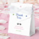 Cute baby panda kids birthday favor box featuring an adorable panda wearing party hat with a panda footprint, bamboo and stars at the background.