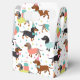 Cães de dachshund de festa de aniversário bonitos com casacos pretos, bronzeados e maçanetas vestidos de bonitinhos roupas de aniversário com balões, bolo e padrão de confete.