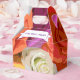 Desenho floral colorido. Caixas de lembrancinhas personalizadas. Edite o texto para personalizar. Ideia de decoração para festa.