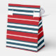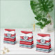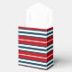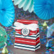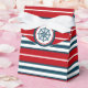 Design náutico com decoração em forma de bússola em fundo listrado vermelho, azul e branco
