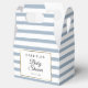 Com um fundo azul e branco poeirento, esta elegante caixa de favoritos para o chuveiro de bebês apresenta uma elegante borda de folha de ouro falso que enquadra seus detalhes do chuveiro, em tipografia quic e uma mensagem de agradecimento especial no verso. Projetado por Thisnotme©