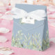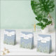 Uma elegante caixa de favores de casamento com folhas de aquarela delicadas em um fundo azul empoeirado armando suas iniciais de monograma e data especial definida na tipografia moderna. Você pode personalizar com seu próprio obrigado sua mensagem sob a tampa. Uma maneira perfeita de dizer obrigado aos seus hóspedes! Projetado por Thisnotme©