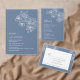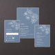 White line art cherry blossoms on a dusty blue background. With a thank you expression in an elegant handwritten font and custom bride and groom names and the wedding date.