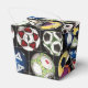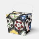 Caixa de favores do estilo "take out" com uma imagem de uma variedade de bolas coloridas de futebol em frente a uma rede de gol de futebol em preto. Veja confetti correspondente, caixa de favor, etiqueta de favor, sacos de presentes, etiqueta, adesivo e papel de embalagem. Veja a coleção inteira da Caixa de Favoritos do Dia do Pai nos TOUCHES ESPECIAIS | Seção Favoritos para festas. Este produto não está associado nem afiliado ao titular original dos direitos de autor.