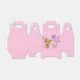 Vocês vão adorar este fundo cor-de-água rosa com uma linha de roupas segurando um pano burpo, Urso Teddy, meias, bib e um pássaro pequeno. O texto diz que é uma garota! Excelente para um chá de fraldas de menina.