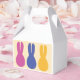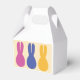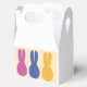 Easter favor boxes in pastel yellow with easter eggs on front and back.