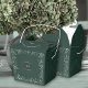 A sophisticated minimalist wedding favor box featuring a deep green background adorned with delicate white botanical illustrations. The center monogram adds a personal touch, making it perfect for weddings, anniversaries, or garden-themed celebrations. This favor box combines a modern design with nature-inspired elegance — ideal for packing small treats, candles, or keepsakes. The leafy frame detailing enhances the natural, serene aesthetic while maintaining a clean and timeless look.