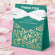 Conclua a sua comemoração de formatura com esta elegante caixa verde esmeralda e de ouro, projetada para corresponder à sofisticação do seu evento. Apresentando um rico fundo verde com sotaques dourados intrincados, esta caixa de favor adiciona um toque luxuoso à decoração do seu partido. Perfeito por fazer pequenas guloseimas, doces, ou guardas, esta caixa de favor personalizável é uma bela maneira de obrigado aos seus convidados para celebrar este marco especial. Combine com o convite à graduação em verde e ouro para um tema coordenado e na moda de graduação.