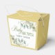 Caixas de favor adoráveis, projetadas como "para ir", apresentam folhas verdes e douradas de eucalipto para um toque verdadeiramente elegante. Atualize uma linha de texto à medida que você vê o ajustado.