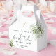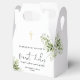 Esta elegante caixa de favores para a primeira comunhão com folhas de greenery botânica pode ser personalizada com suas informações em tipografia chic. Desenhada por Thisisnotme©