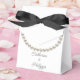 Caixa de Favor do Casamento Elegante Branco com colar de pérolas prateado em aquarela. É muito fácil personalizar, com detalhes de seus detalhes pessoais.