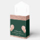 Esta caixa de lembrancinhas personalizável é o epítome do glamour com seu design em verde esmeralda e dourado rosa. Com glitter e balões dourado rosa falso, é a adição perfeita para qualquer celebração, desde aniversários até aniversários de casamento e convenções. A melhor parte? Há muito espaço para você adicionar seu próprio texto e torná-lo verdadeiramente único.