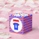 Uma ideia excelente para as festas de rapazes e raparigas, esta caixa de favores às festas de crianças, totalmente personalizável, tem cores vermelho e azul brilhantes. Escreva o seu próprio texto nas caixas acima e o nome da aniversariante ou rapaz aparece em texto branco no topo desportivo. A faixa de aniversário declara "BIRTHDAY" em letras maiúsculas negras - ou isto também pode ser editado. Estes elementos são impressos tanto na frente como no verso da caixa. Na tampa da caixa, um círculo branco com pequenas estrelas azuis é o fundo do texto principal, que é novamente editável. Ou você pode usar o "Obrigado por vir ao meu partido"