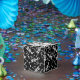 Caixas de lembrancinhas de festa de 2" quadradas apresentam esqueletos em um fundo preto e sua mensagem em letras elegantes na parte superior. Você se divertirá com essas para festas de Halloween, casamentos e muito mais. Itens COMBINADOS em nossa loja.