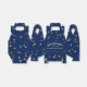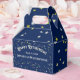 Caixa de favor de aposentadoria com o nome do aposentado sortudo, data de aposentadoria e texto de boas aposentadorias. O design de fundo é estrelas ouros sobre um fundo azul escuro.