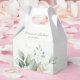 Linda caixa de favoritos de casamento com aquarela eucalipto e folhas de ouro.