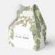 Caixa de favores de na moda com um design de folha de eucalipto macio em verde-sábio e bege sobre um fundo branco limpo. Personalizável com o nome e a data do chá da noiva, é ideal para celebrações elegantes e inspiradas na natureza. Perfeito para guloseimas, presentes pequenos, ou obrigado-você surpreende seus convidados.