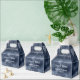 Uma elegante caixa de favoritos de casamento azul escuro e folha de papel.