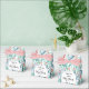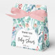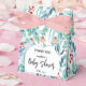 Favor Box para chá de fraldas, decorado com imagens adoráveis de plantas aquáticas com esmeraldas e folhas azuis, galhos e flores rosadas macios.