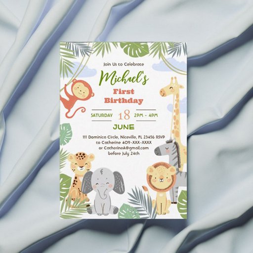 Apresentando uma design plana de um adorável leão, leopardo, elefante bebê, girafa, zebra e macaco, a caixa de favoritos será uma adição excelente à festa do seu filho.