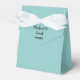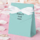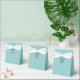 Favor boxes with satin ribbon and your names, elegant personalized blue wedding favors, chic and classic favors