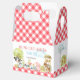 Na Coleção de Fazendas Dê a seu convidado uma doce obrigado... e coloque-a nesta adorável caixa de gable Fazenda do quintal. Apresentando todos os animais de Barnyard que você ama. Vaca, Cavalo, Suíno, Ovelha, Galo, Pequenos Pintinhos e o cão fazenda.