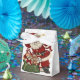 "Tent-style" com uma caixa de boné branca com uma imagem vintage dos anos 40, na frente e atrás, do Santo alegre Nick com um cheio de brinquedos e carregando uma caixa de alegria de Natal em queda de neve. Ver cartão de boas-vindas, envelope, confetti, etiqueta de favor, sacos de presentes, etiqueta, adesivo redondo, vinil autocolante e papel de embalagem. Veja toda a coleção Holiday Favor Box nos TOUCHES ESPECIAIS | Seção Favoritos para festas.