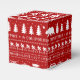 Caixa de Presentes de Natal da Califórnia. Padrão de férias no estilo de suéter verde e branco com ursos estaduais da Califórnia, carros bonitos, renas e um cachorro andando de skate. Um Natal na Califórnia: Amor, Alegria, Paz, Sol. Pacote original de presentes do Xmas para os californianos.