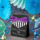Que maravilhosa Caixa de Favor do Partido personalizado para um 10º Aniversário de Casamento ou outra ocasião especial. Esta Caixa de Favoritos é decorada com um padrão de listras brancas e pretas sobre um fundo preto. Na frente, Nomes e Evento em branco. Uma fita roxa completa o olhar festivo. Uma caixa de favores moderna, elegante e chic Wedding Anniversário. Todos os Direitos Reservados © 2015 Alan & Marcia Socolik.