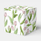 O design do produto apresenta um padrão de flores de tulipa rosa. Esta ilustração botânica com texto personalizado torna caixas de lembrança modernas e únicas para chá de noiva, casamento, aniversário, Páscoa, Dia das Mães e mais - OBRIGADO.