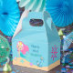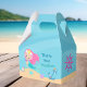 Uma bela caixa de favores personalizada da sereia que apresenta uma adorável menina de cabelos rosa com uma legal cauda de chá nadando perto de lindas conchas no oceano. Legal presente de aniversário de verão para convidados de uma festa de piscina ou de um luau de praia.