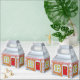 O que poderia ser dentro? Doces para comer? Uma pequena e bonita casa de pão de gengibre que poderia segurar pequenos presentes. A parte de trás pode ser personalizada com sua saudação ou removida para não ter nenhuma. Esta casa de pão de gengibre tem caixilhos de vidro de gelo em três lados e uma porta de vidro doce vermelha com um passo de neve na frente.