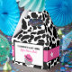 Celebre as noivas com essas caixas de lembrancinhas de despedida de solteira com tema de disco cowgirl. Elas apresentam uma estampa divertida de vaca preta e branca com uma ilustração de uma bola de discoteca usando um chapéu de cowboy rosa. O texto está pronto para ser personalizado com sua própria mensagem.