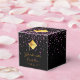 Classe de 2021. Para uma comemoração moderna e moderna da graduação. Um fundo preto chic com confete roxo e rosa. O texto: O formando é escrito com um script de estilo, letras de ouro, com letras grandes. Personalize e adicione um nome e ano. Decorado com um abstrato moderno boné de ouro falso, tassel topper.