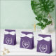 Design de jurista humorístico com escalas de Justiça personificadas em um fundo roxo para a festa de formatura de Direito ou celebração de escritório de Direito.