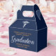 Esta caixa de festas de formatura personalizada moderna da faculdade de medicina apresenta o nome do formando da faculdade em ouro elegante no fundo azul do marinho chic para a classe de 2025. Personalize com sua universidade sob o caducamento médico para manter a graduação em excelente para mais velho.