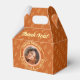 Eleve a celebração da sua formatura com caixas de lembranças fotográficas elegantes em tons alaranjados quentes, pêssego suave e creme. O design apresenta a foto do formando em uma moldura arqueada sofisticada com o nome, escola e ano de formatura, rodeada por um padrão repetitivo de gorros de formatura. Detalhes atenciosos criam uma experiência de convidado elevada e uma lembrança memorável.