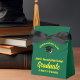 Esta caixa de favorecimento de festa de formatura personalizada moderna, verde e amarela, apresenta seu nome de segundo grau ou de faculdade para a classe de 2025. Personalize com o nome do seu mais velho de graduação sob o script de chic manuscrito e o boné de formando preto para favoritos de manutenção personalizada do formando excelente.
