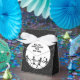 Os favores da festa de Halloween ou caixa de presentes para amigos, vizinhos ou colegas de trabalho com esqueletos de citação engraçada dançando à luz da lua. Editar texto para personalizar.
