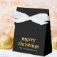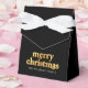 Esta é uma caixa de favores na moda preto e dourado em preto mínimo moderno com Feliz Natal em uma tipografia de ouro ousada e elegante. Isso seria perfeito para quem quer que queira organizar festas de Natal elegantes e quer enviar seus convidados para casa com favores de estilo.