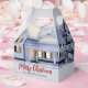 Esta linda caixa personalizada para presente de Natal de imobiliária é perfeita para uma empresa de imóveis localizada no norte. Lindas linhas de neve branca cobrem as árvores e a casa neste presente de férias de inverno. Um corretor pode manter 'Feliz Natal' em escrita vermelha e verde ou personalizar com seus próprios cumprimentos de temporada.