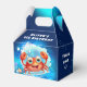 Caixas bonitas de bonequinho para uma piscina, parque d'água, praia, rua de verão 1 ou qualquer Festa de aniversário de menino com um caranguejo feliz adorável no fundo azul do oceano marinho. Você pode escolher entre três tamanhos dessas caixas de favoritos mastigáveis. Personalize facilmente o texto. - Kate Eden Art