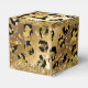 Uma bela ilustração de colagem de abstrato em ouro falso e preto com manchas-leopardo sobre um fundo de ouro falso vibrante que tem pontos brilhantes sobre ele e ao longo das bordas superior e inferior. Essas caixas de bonés modernas e luxuosas podem ser personalizadas para qualquer safari africano ou animais selvagens da festa temática africana que você possa estar hospedando. Personalize os modelos para atender às suas necessidades.