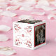 Flores de Cerejeira Vermelhas/Brancas/Sakura e Símbolo de Dupla Felicidade, Caixa de Favor de Casamento Chinesa Elegante com 3 Fotos.
