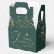 Caixa de favor Floral Quinceañera. Design moderno em verde esmeralda e ouro com flores e sinais de caligrafia lindos. Adicione seu próprio texto com a ferramenta de edição Zazzle fácil de usar! NOTA: os detalhes dourados são imitação. Não é utilizada qualquer folha de alumínio.