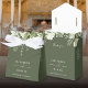 Caixa de favorecimento floral verde-oliva elegante para casamento personalizado com seus nomes, iniciais de monograma, data de casamento e mensagem especial. Projetado por Thisnotme©