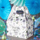 Caixas de favores de festa em estilo de águas-furtadas cobertas com flores e folhas roxas elegantes que apresentam sua mensagem de agradecimento na frente. Perfeitas para chás de noiva, chás de bebê, festas de aniversário ou qualquer ocasião especial. Papel de seda COMBINANDO e mais itens em nossa loja.
